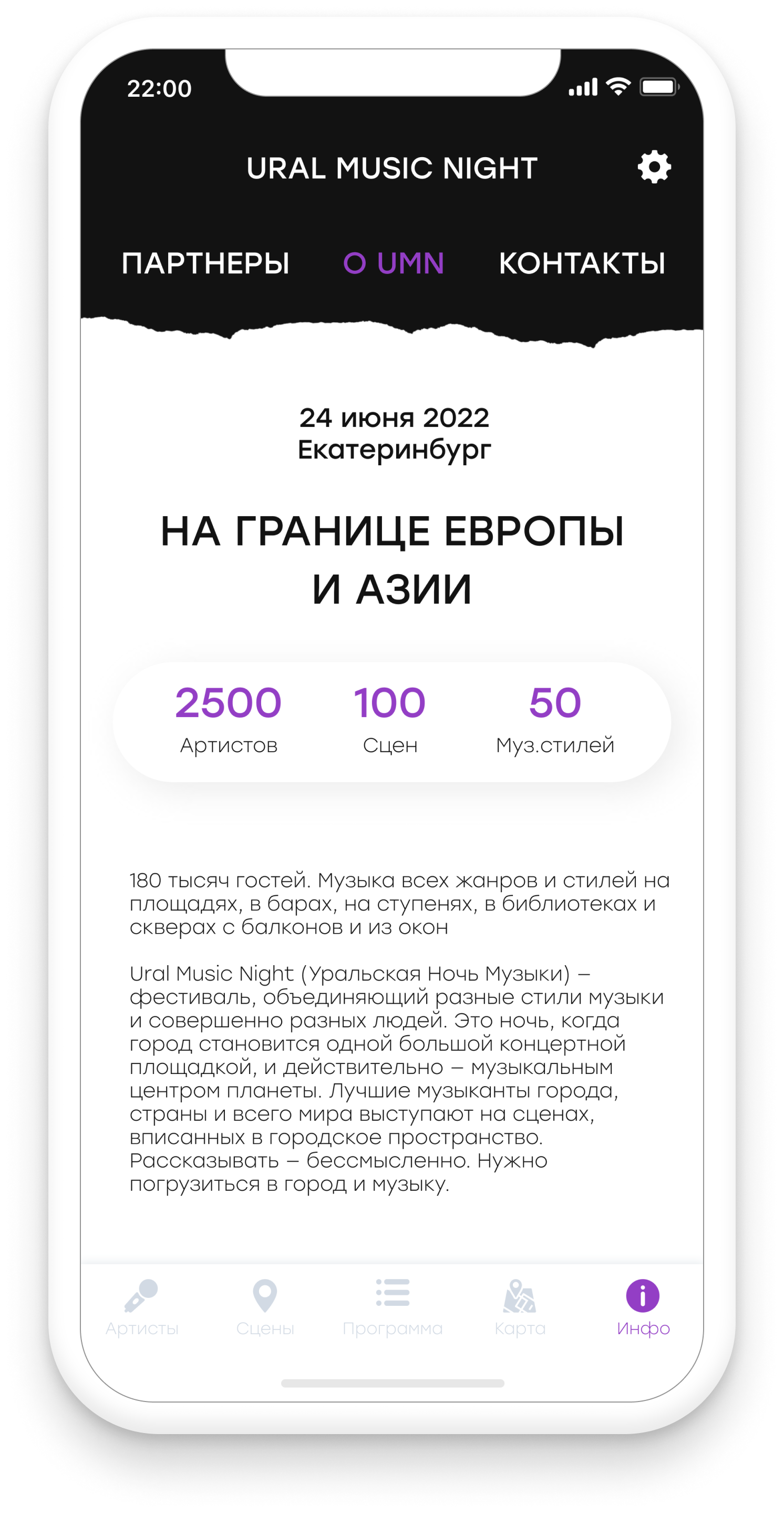 Ural Music Night («Уральская Ночь музыки») – это крупнейший музыкальный фестиваль России. Это ночь, когда Екатеринбург становится музыкой. Весь центр города звучит на тысячи голосов. Всемирно известные артисты и молодые музыканты исполняют свою музыку для всех и для каждого.